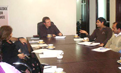 The Pak Institute for Peace Studies (PIPS) arranged a dialogue with Mr. Stig Toft Madsen, a famous Danish researcher associated with Nordic Institute of Asian Studies on December 17, 2007 in Islamabad… The Pak Institute for Peace Studies (PIPS) arranged a dialogue with Mr. Stig Toft Madsen, a famous Danish researcher associated with Nordic Institute of Asian Studies on December 17, 2007 in Islamabad. The participants of the session- Mr. David Hansen (Faculty of Humanities, University of Oslo, Norway), Mis Seemi Jan (a famous Danish journalist), Miss Shabana Fayyaz (Strategic Studies Department, Quaid-e-Azam University Islamabad), local journalists and the PIPS team- discussed about the Pakistan’s image in West and Mr. Stig’s experience after his visit.