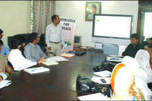 The second group was associated with PIPS field research team to conduct interviews with scholars, social scientists and academicians as a part of primary data collection for a study on “Radicalization in Pakistan”, currently being conducted by the PIPS. The third group was assigned the task to arrange a workshop in the Quaid-e-Azam University on the issue of radicalization, in collaboration with the PIPS. The students showed their keen interest in becoming part of all these activities.