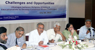 Chaired by Dr. Khalid Masood (director, Islamic Research Institute, International Islamic University, Islamabad), the first session focused on different education systems in Pakistan. Prominent religious scholars and educationists discussed the challenges facing the religious and mainstream education in Pakistan, respectively, and the required responses to cope with these challenges.