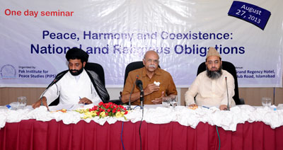 It is not so much the religious conflict as a matter of social behaviours that fuels intolerance and extremism in Pakistani society. Poor academic and intellectual responses, absence of dialogue and interaction among different sections of society, the use of religion as a political tool by Pakistani state, presence of extremist groups and ideologies in the country, and socioeconomic injustices and marginalisation are some other factors. These views were expressed by prominent scholars and intellectuals who participated a national seminar on “Peace, Harmony and Coexistence: National and Religious Obligations,” organized by Pak Institute for Peace Studies (PIPS) on August 27, 2013 in Islamabad.