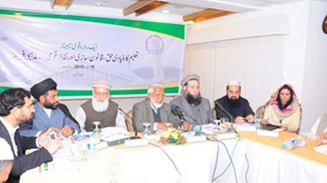 Former federal minister Maulana Noor-ul Haq Qadri said acquiring education is more of a religious obligation than a constitutional and legal right. It is the religious obligation of Ulema to incorporate education in social values held by Muslim Ummah. The major obstacle in the way of education is the parallel educational systems prevailing in Pakistan which need to be addressed seriously.