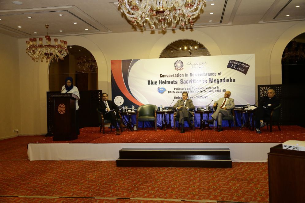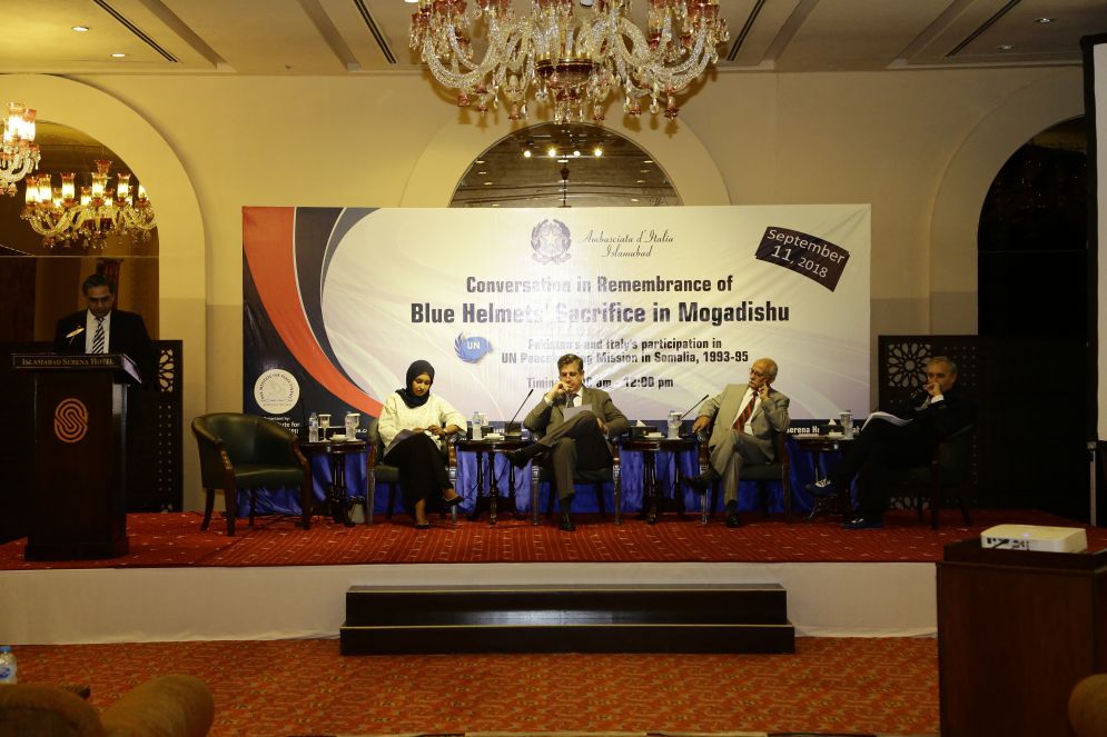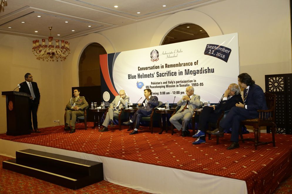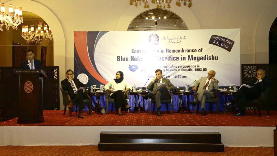 These views were reflected in a one-day program of presentations and interactive dialogue at the remembrance conversation on “Blue Helmets’ Sacrifice in Mogadishu”. The discussion, which was attended by defense analyst, peacekeeping veterans, experts, and academics, brought to light Pakistan’s and Italy’s participation in UN peacekeeping mission in Somalia, 1993-95.