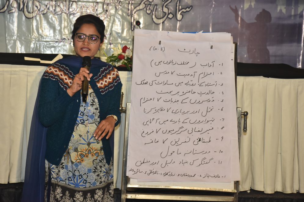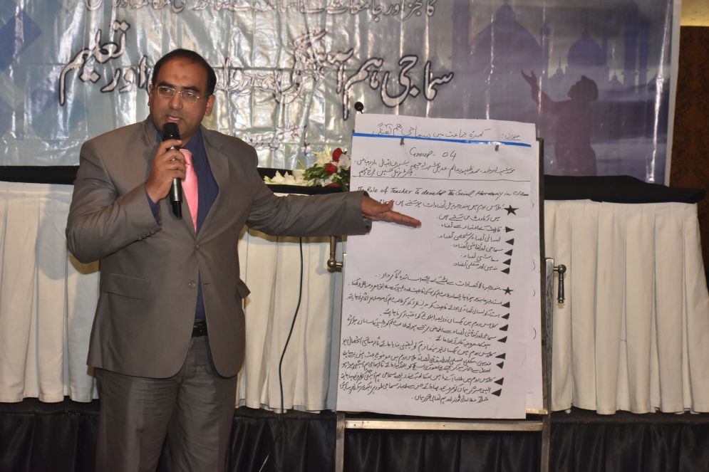 Journalist Sabookh Syed said while people often tend to look at the state for solving problems, when it comes to social disharmony, the solution lies as much in the hand of state as an individual like teachers. In the classroom, with their acts, they can help promote social harmony, respecting diversity of opinion and encouraging critical questions. Teachers should utilize their efforts to create social harmony among their students and other society members without any social bias. They, as a teacher, can play a vital role in this national cause of promoting social cohesion.