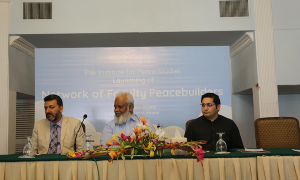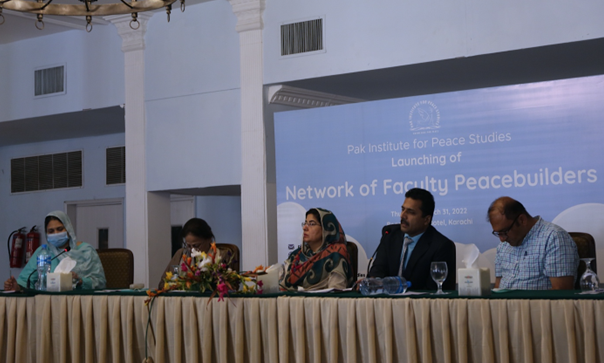 To promote the peacebuilding role of university faculty, Pak Institute for Peace Studies (PIPS) conducted a ceremony on 31st March 2022 at Beach Luxury Hotel, Karachi, where a “Network of Faculty Peacebuilders” was established. The network is currently composed of a selected pool of faculty members of six universities – four from Karachi and two from Multan – who received peacebuilding training organized by PIPS, organized seminars in their respective campuses, and engaged students and other faculty members in social action projects relevant to CVE and peace. The network is planned to expand further through future engagement of PIPS with faculty members of other universities. The objective of this network is to facilitate exchange of knowledge and experience on peacebuilding among faculty members of public and private universities across Pakistan and to create positive role models in university campuses for students.